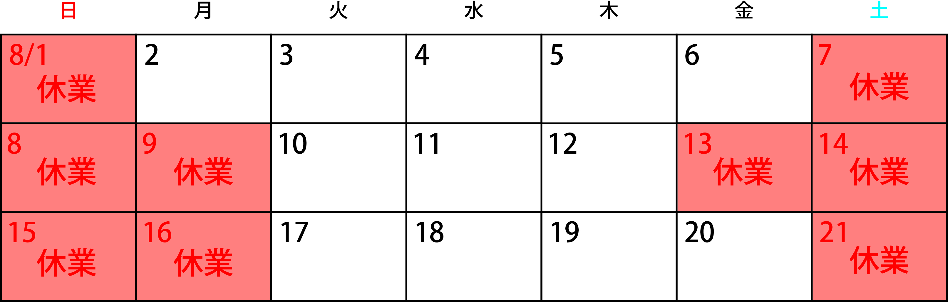 令和3年 夏季休業日のお知らせ 2021-07-26 誠に勝手ながら、弊社の夏季休業日を下記のとおりとさせていただきます。 何卒ご了承くださいますようお願い申し上げます。 8月 カテゴリー お知らせ 新着情報一覧に戻る